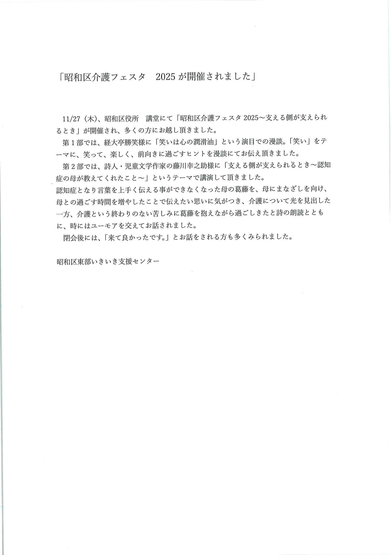 R7年11月27日 昭和区介護フェスタ 2025が開催されました