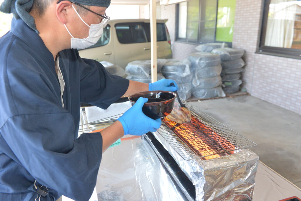 一色産の鰻を炭火で焼き、秘伝のタレを塗ります。
